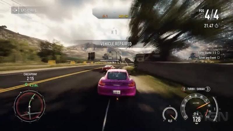 The game is based in the fictional Redview County, which along with its varied environments features a dynamic weather system along with a day/night cycle. It makes for some breathtaking visuals at times. And despite the frantic fast paced action, it doesn't skip a beat, running smoothly throughout. The cars look fantastic (even if there isn't a huge amount of cars available) as you swing around bends narrowly missing the barriers and shooting off with a flash of nitrous. Even hammering into walls, trees and other parts of the environment is accompanied by a little crash cutscene which shows the wreckage of your car - not that this damage effects driving at all, just lowers your 'health'.